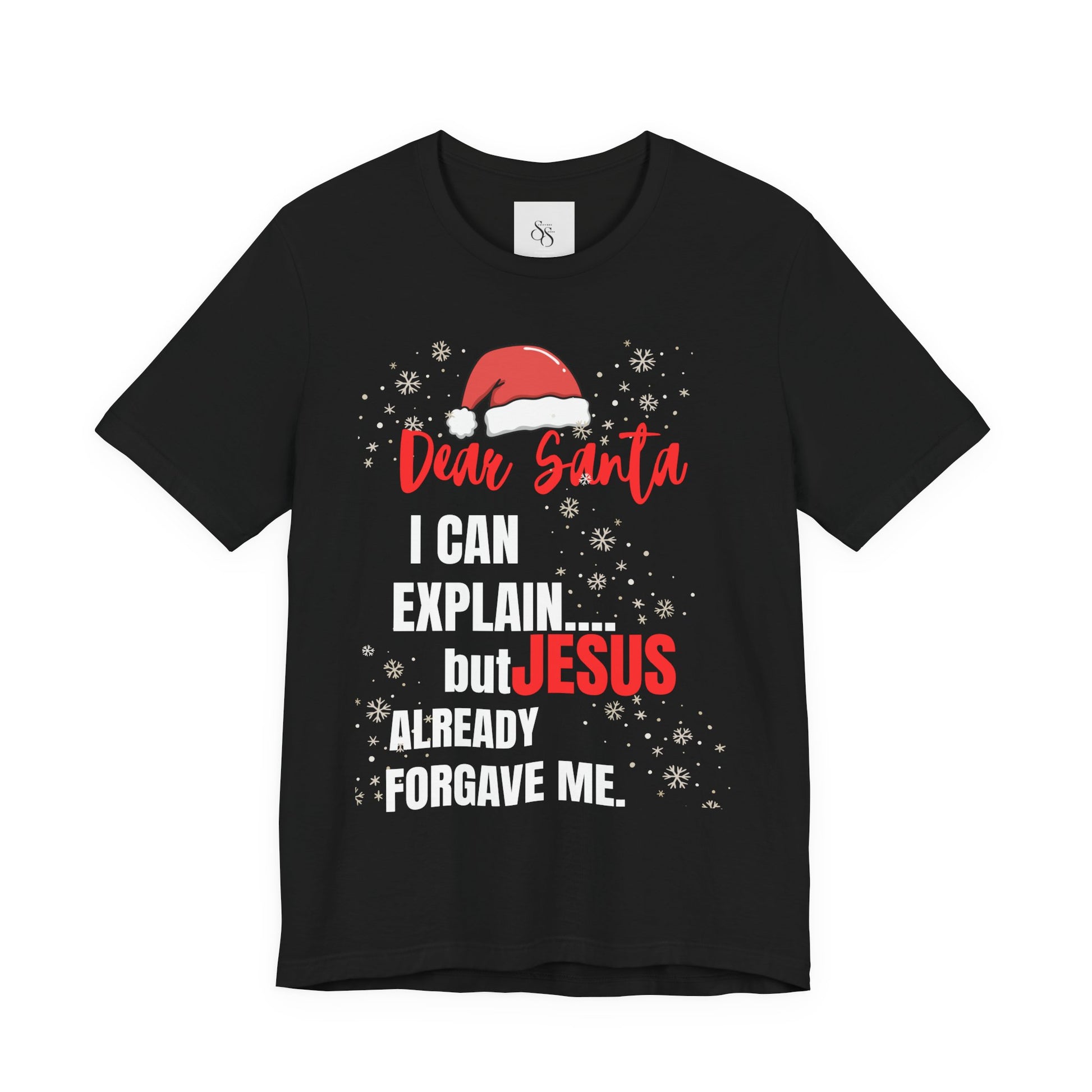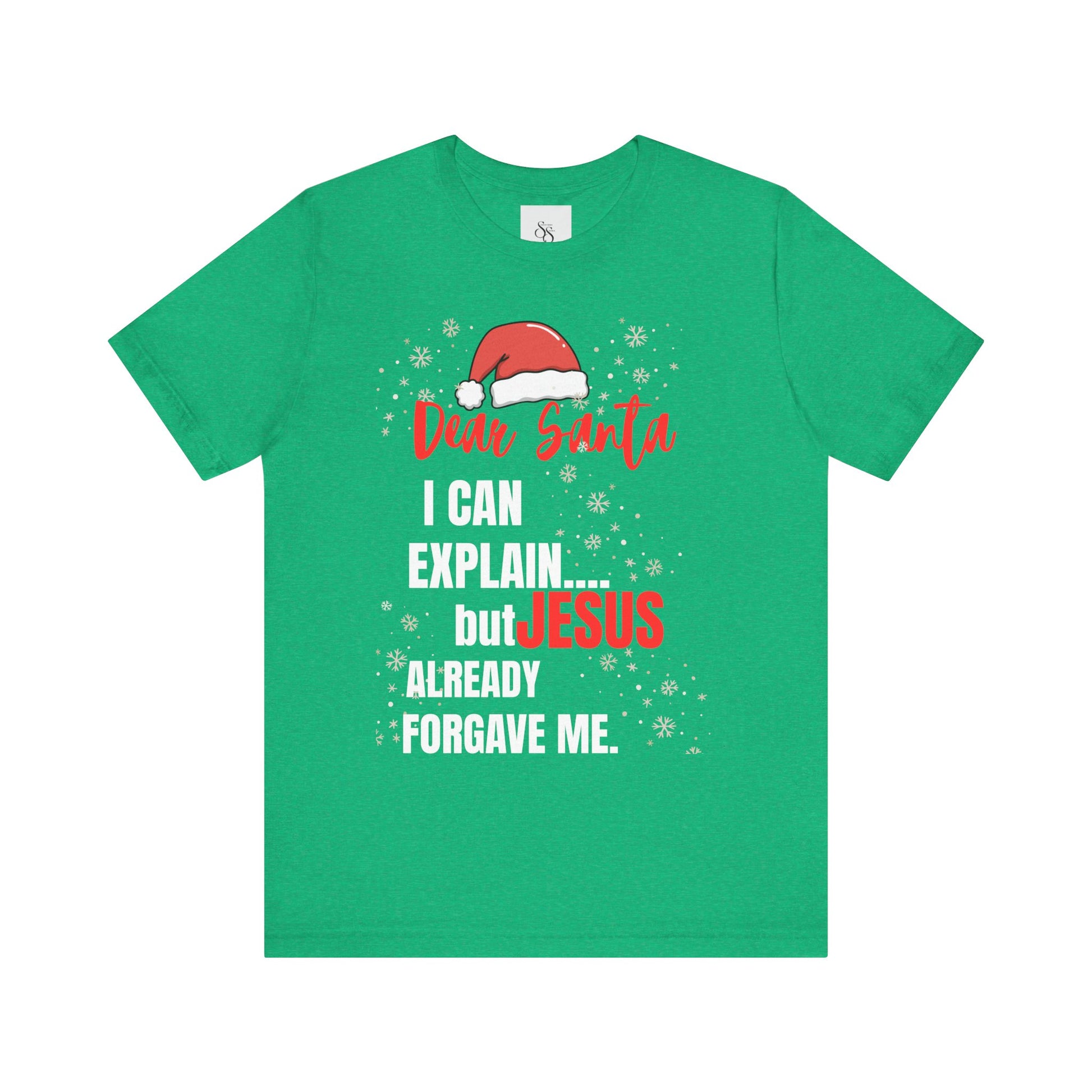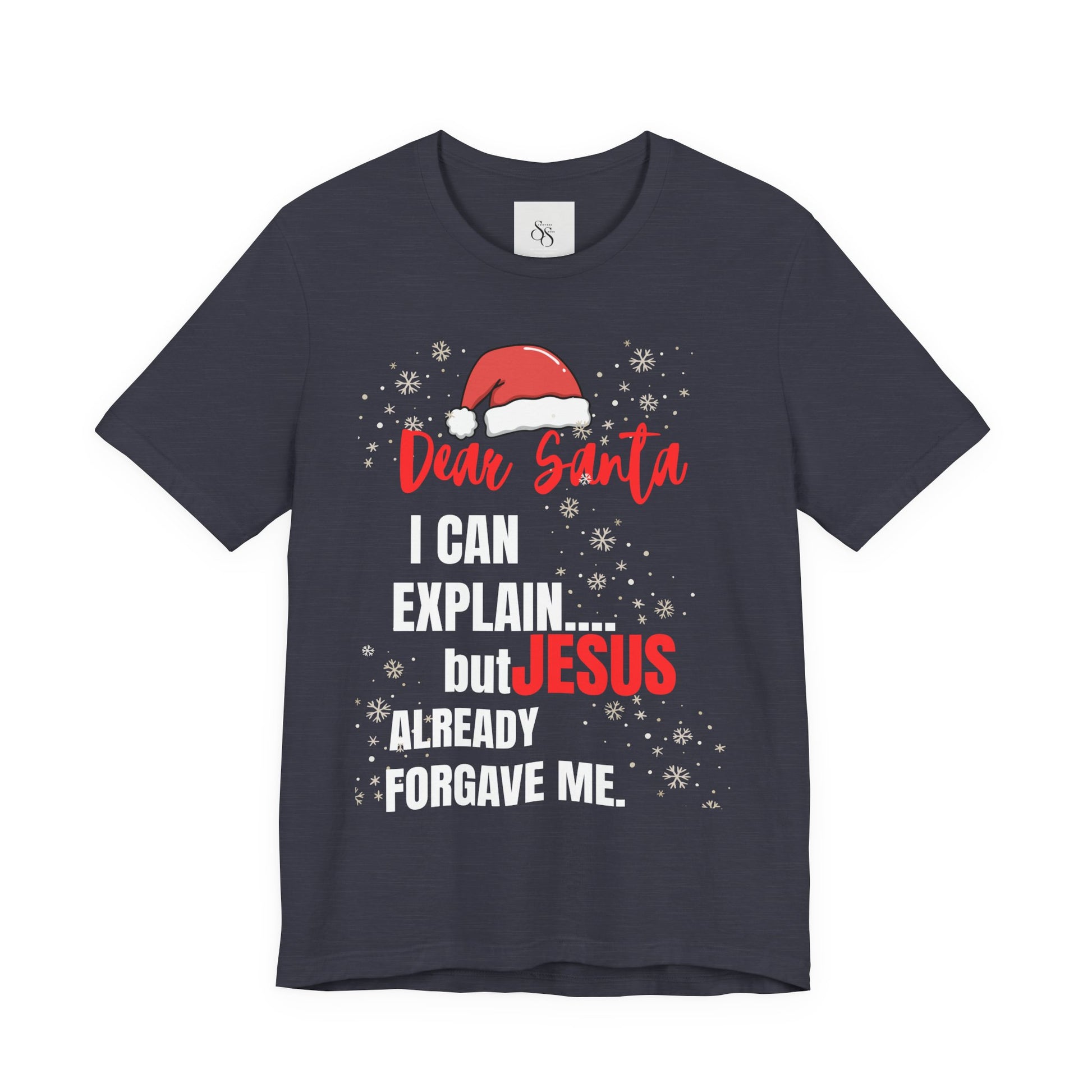Christian Christmas T‑Shirt - "Dear Santa I Can Explain But Jesus Already Forgave Me"